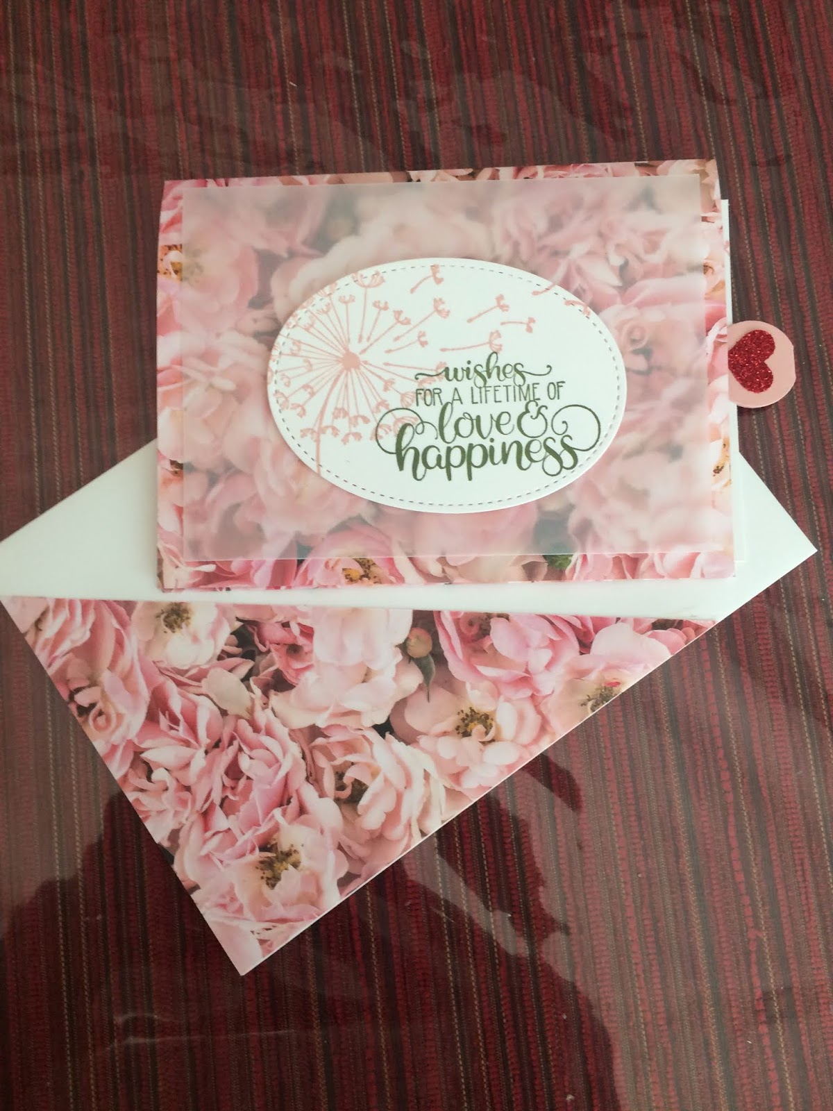 Hier nogmaals een mooie zachte roze (Blussing Bride) uitvoering. Zeer toepasselijk voor deze huwelijks felicitatie-kaart.
